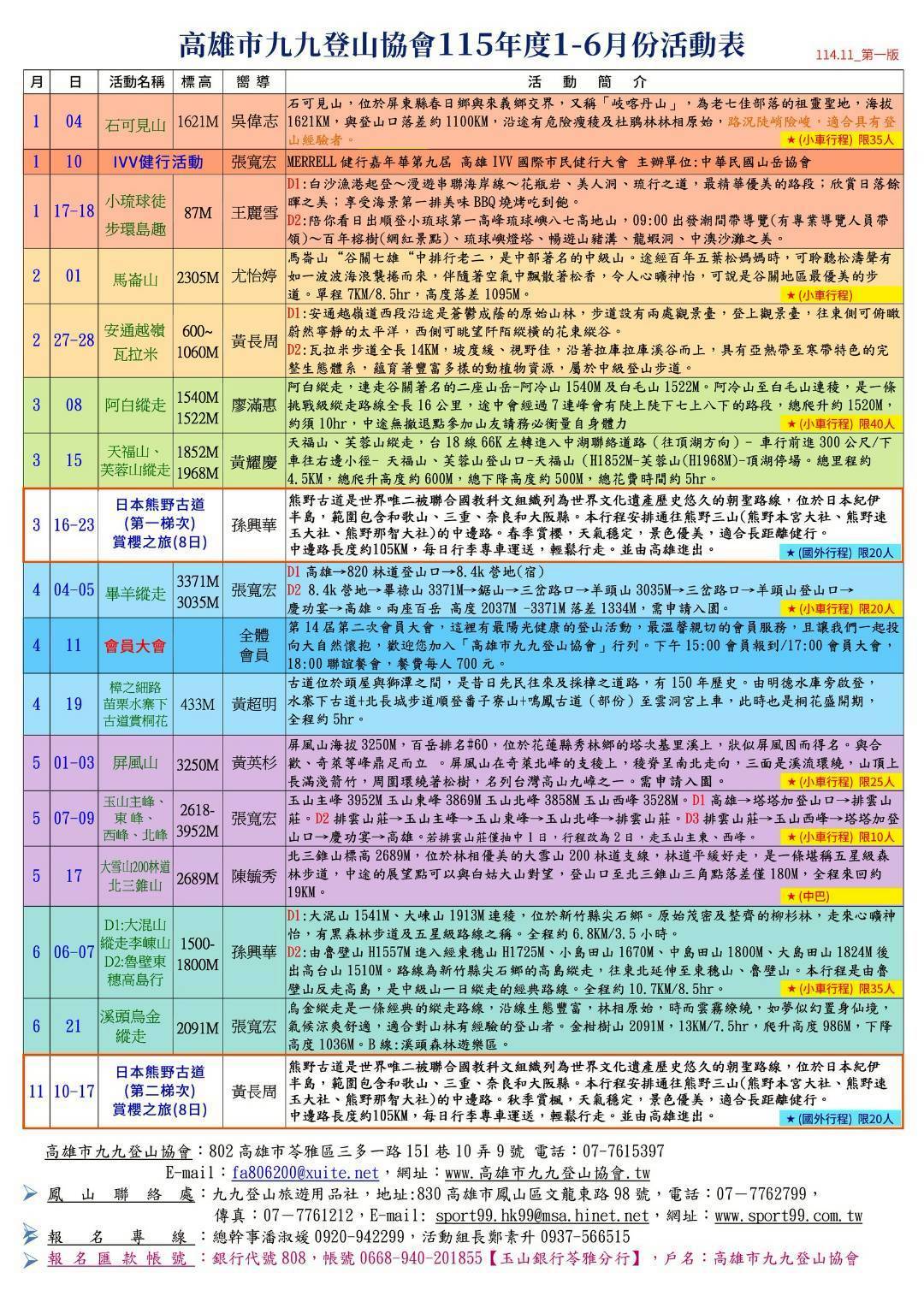 高雄市九九登山協會活動訊息