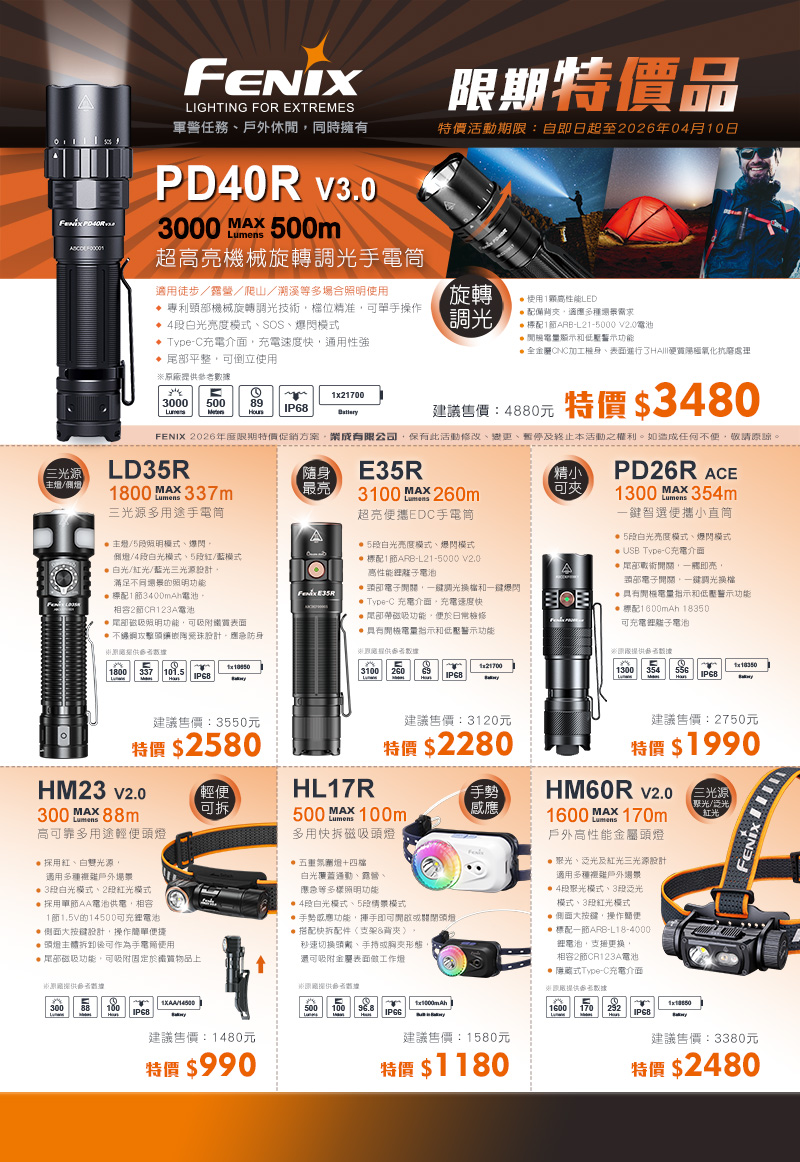 品名:FENIX HL16 2023 輕量型戶外頭燈